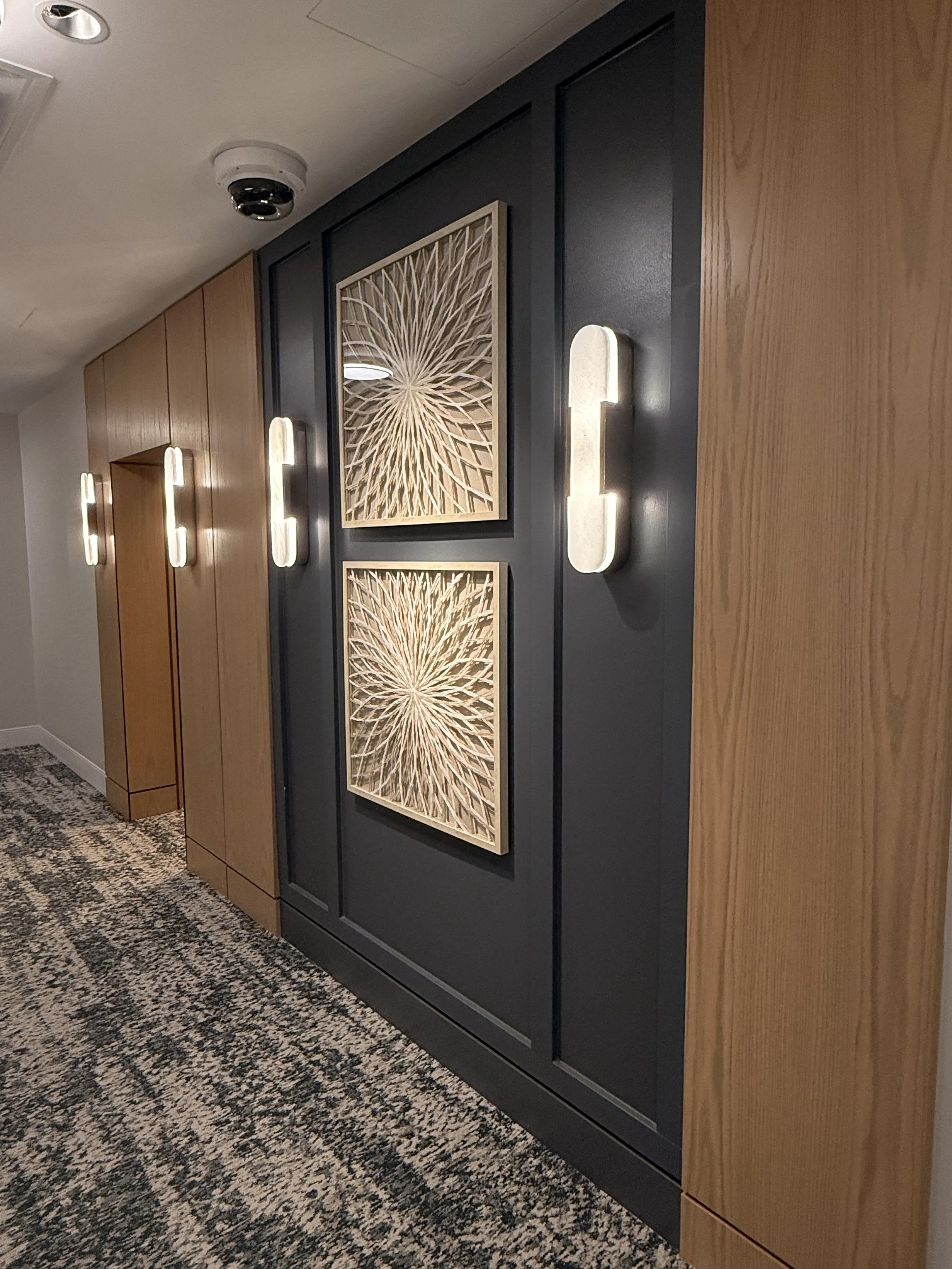 Architectural millwork installation including all interior wood paneling and solid surface installations.